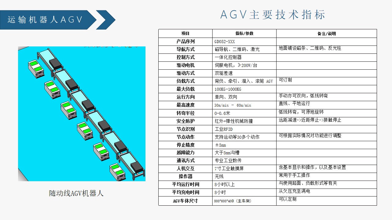 当前,人工费用高昂、企业负担重。使用AGV来运输物料是企业节约费用、降低劳动强度、提高生产效率和企业管理水平的好方法。